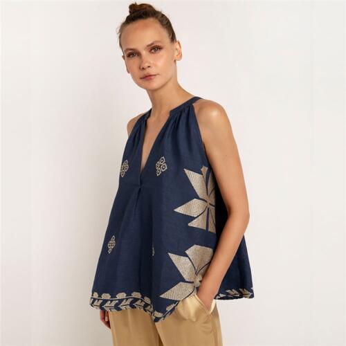 Blouse Sleeveless Linen Embroidered Kori £135.00 -