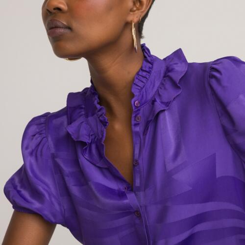Ruffled High Neck Shirt with Short Puff Sleeves La Redoute Collections £50.00 -