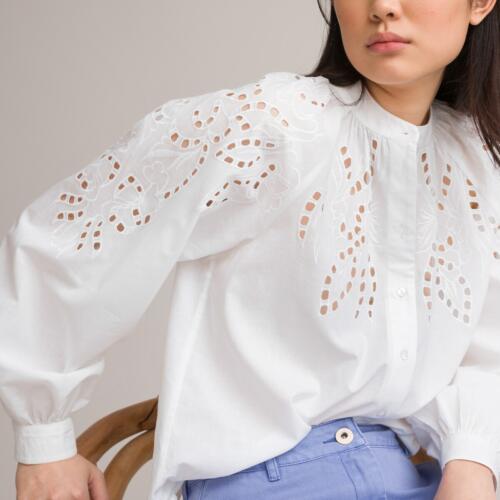 Cotton Mandarin Collar Shirt with Long Puff Sleeves La Redoute Collections £39.00 -