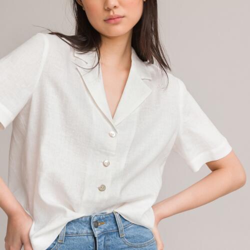 Linen Tailored Collar Shirt with Short Sleeves La Redoute Collections £30.00 -