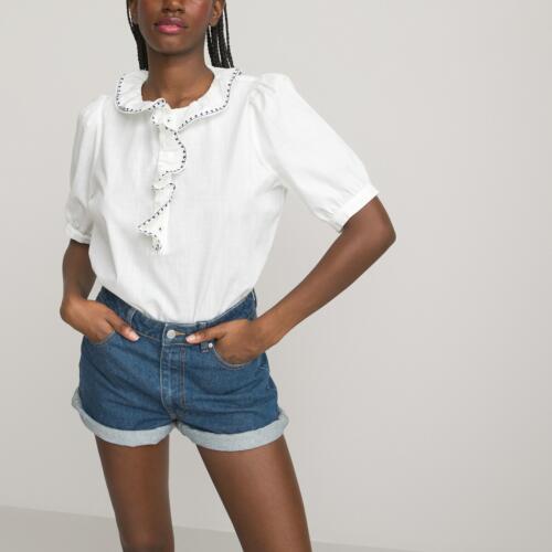 Cotton Poplin Shirt with Ruffled Peter Pan Collar and Elbow-Length Sleeves La Redoute Collections £33.00 -