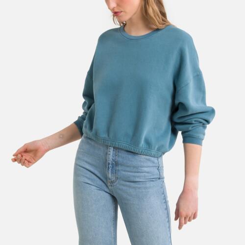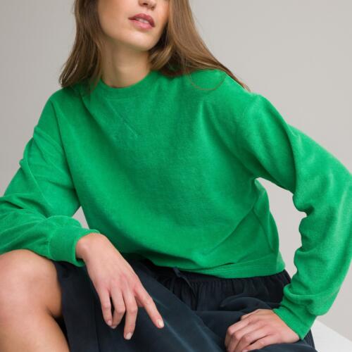 Towelling Cropped Sweatshirt in Cotton Mix with Crew Neck La Redoute Collections £31.20 -