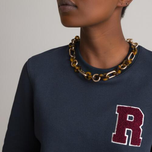Cotton Mix Sweatshirt with Embroidered Bouclé Patch and Crew Neck La Redoute Collections £50.00 -