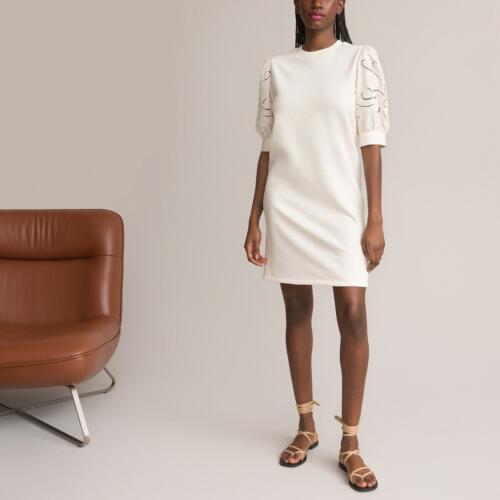 Mini Sweatshirt Dress in Cotton Mix with Embroidered Puff Sleeves La Redoute Collections £45.50 -