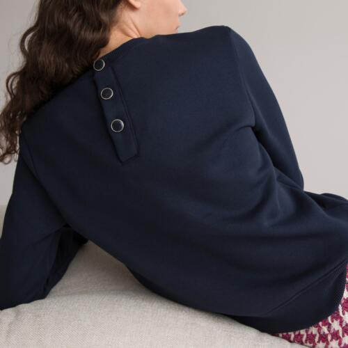 Back Buttoned Sweatshirt in Cotton Mix with Crew Neck La Redoute Collections £26.40 -