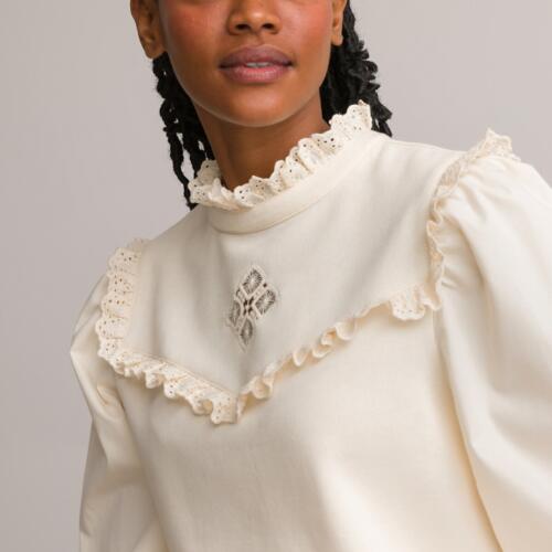 Ruffled Broderie Anglaise Sweatshirt in Cotton Mix La Redoute Collections £30.25 -