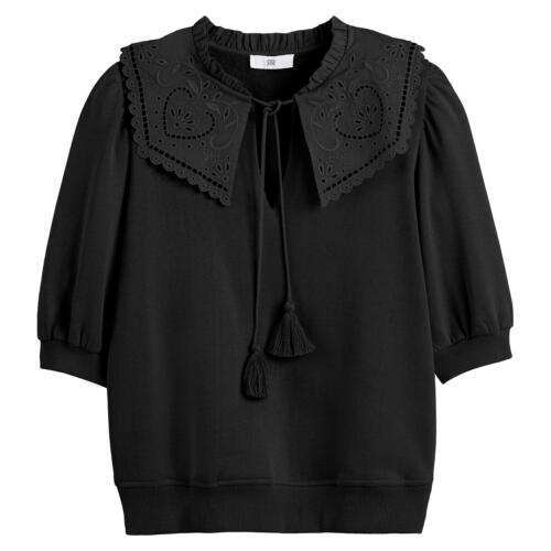 Cotton Mix Sweatshirt with Embroidered Peter Pan Collar La Redoute Collections £30.25 -