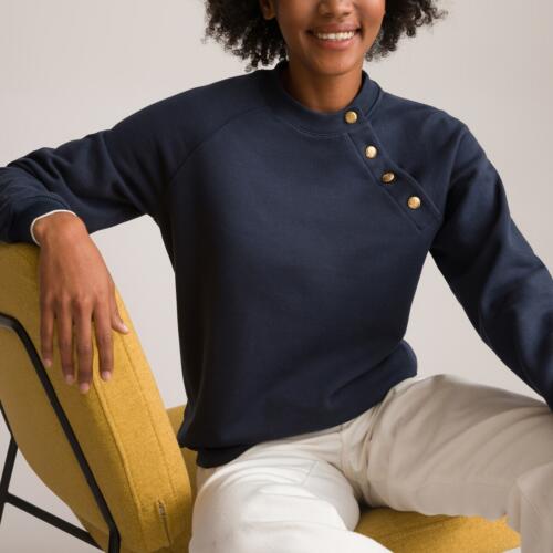 Cotton Mix Sweatshirt with Grandad Collar La Redoute Collections £29.00 -