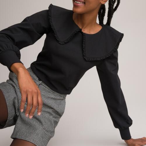 Cotton Long Sleeve T-Shirt with Peter Pan Collar La Redoute Collections -