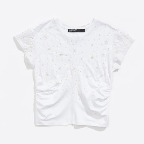 BIMBA Y LOLA White cotton ruched rhinestones T-shirt Bimba Y Lola £105.00 -