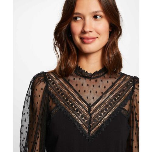 Cotton Mix T-Shirt with Long Lace Sleeves Morgan £32.30 -