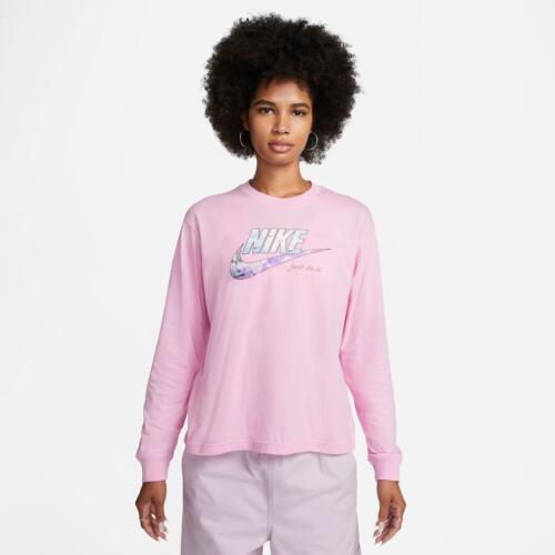 Boxy Logo Print T-Shirt in Cotton with Long Sleeves Nike £32.30 -