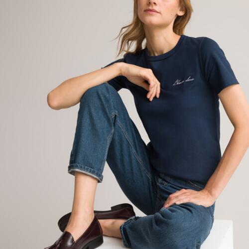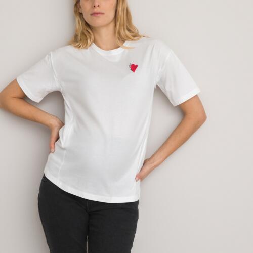 Embroidered Cotton T-Shirt with Crew Neck and Short Sleeves La Redoute Collections £17.50 -