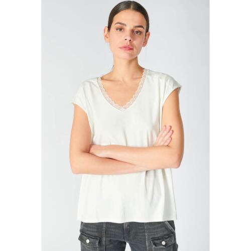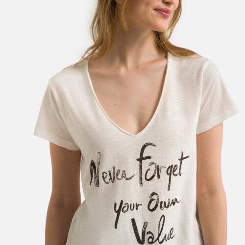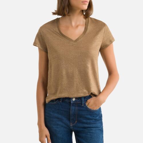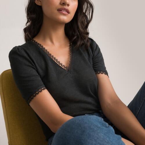 Linen V-Neck T-Shirt with Lace Details La Redoute Collections £16.00 -