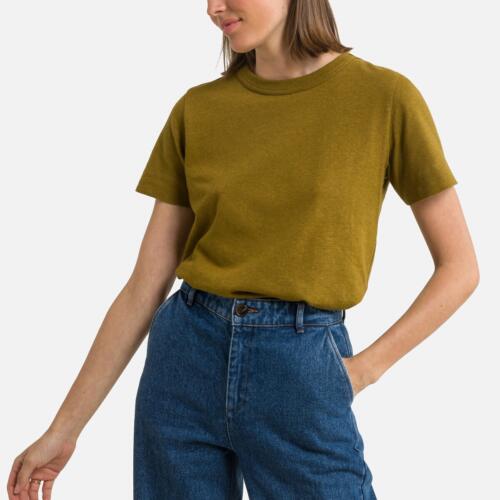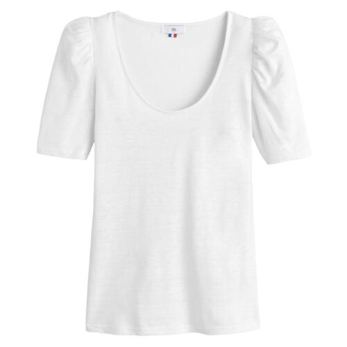 Linen Scoop Neck T-Shirt with Short Puff Sleeves La Redoute Collections £30.00 -