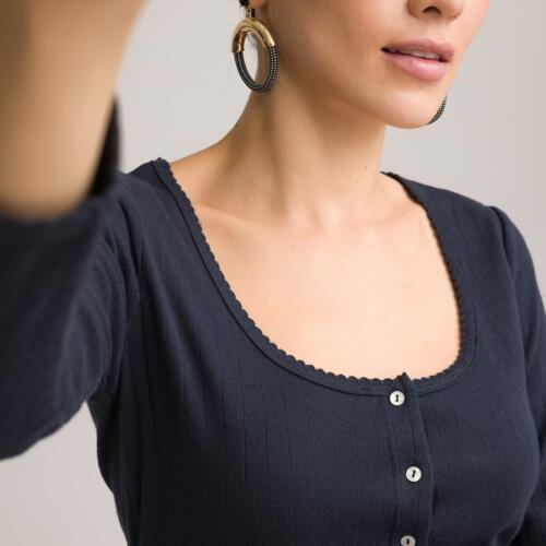 Ribbed Cotton Mix T-Shirt with Scoop Neck and Long Sleeves La Redoute Collections £16.00 -