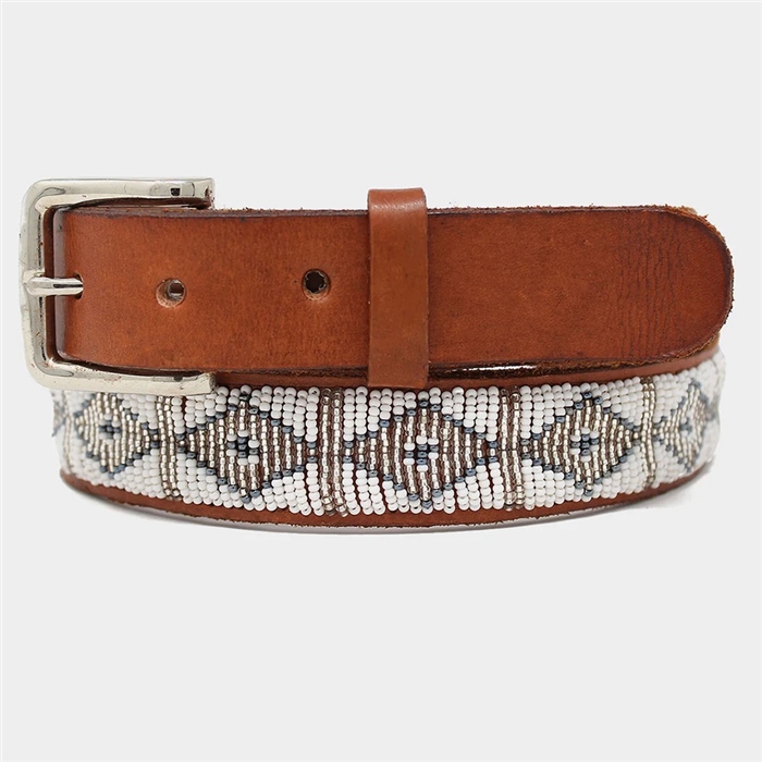 Belt leather and beads triangle by Aspiga This leather and bead triangle belt by Aspiga is a stunning accessory. It is hand beaded in Kenya and embellished with sustainable glass beads. It is made from genuine leather sourced in Nairobi and ….