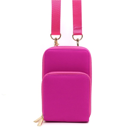 With its two zip-up compartments, this phoneholder bag offers ample storage space for all your essentials. The first compartment is specifically designed to hold your phone, ensuring it stays secure and easily accessible at all times. The second compartment is perfect for keeping your purse organized, with enough room for cards, cash, and other small items.