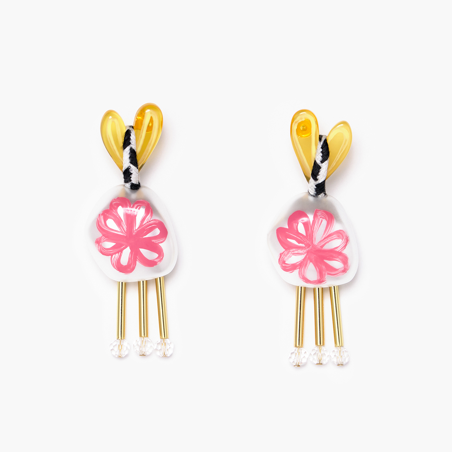 The beautiful multicolor resin heart adds a playful and vibrant touch to these earrings, making them a perfect accessory for both casual and formal occasions. The addition of a pearl and hand-painted flower design creates a feminine and elegant aesthetic, ensuring that these earrings will be a standout piece in any outfit.
