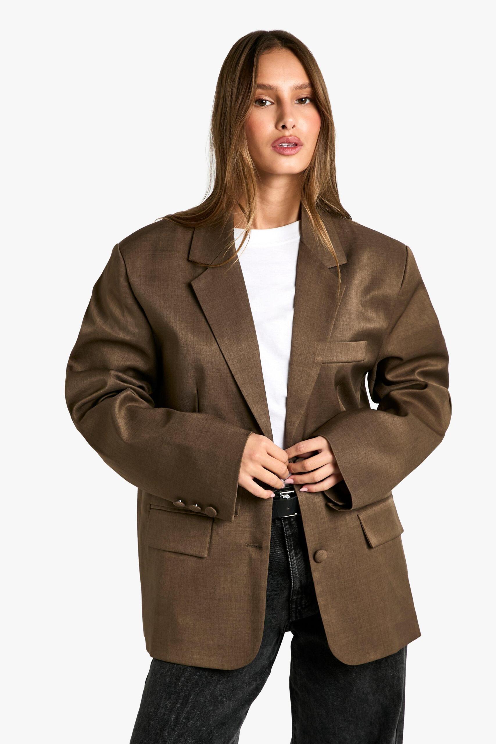 Womens Tailored Oversized Slouchy Blazer – Brown – 8 – Tailored Oversized Slouchy Blazer