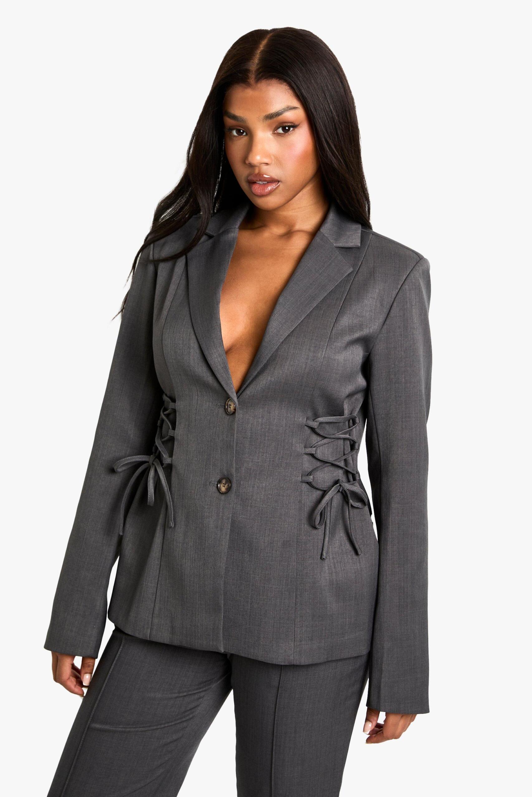 Boohoo Womens Woven Tailored Lace Up Blazer
