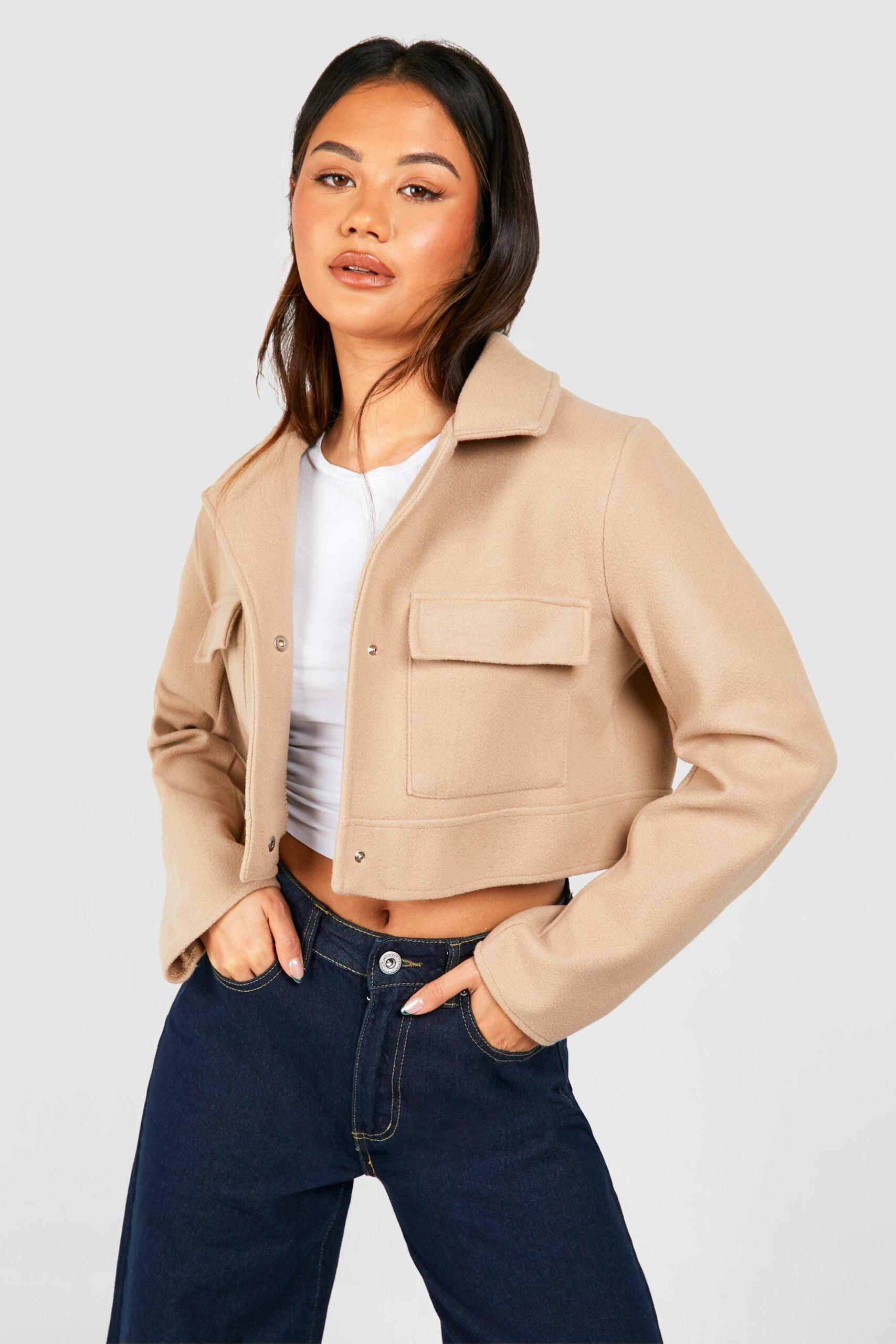 Boohoo Womens Asymmetric Crop Wool Look Jacket