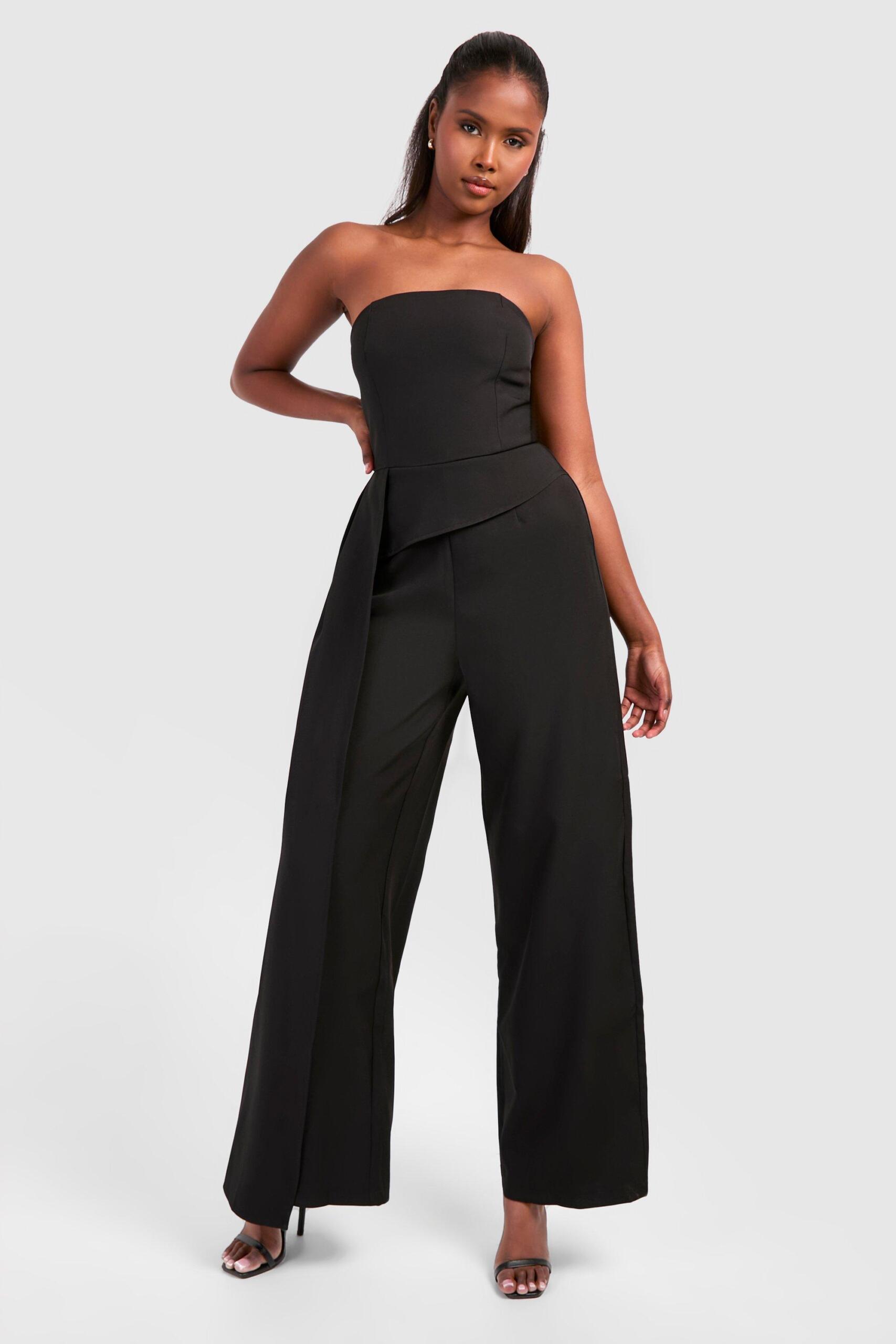 Boohoo Womens Bandeau Drape Wide Leg Jumpsuit