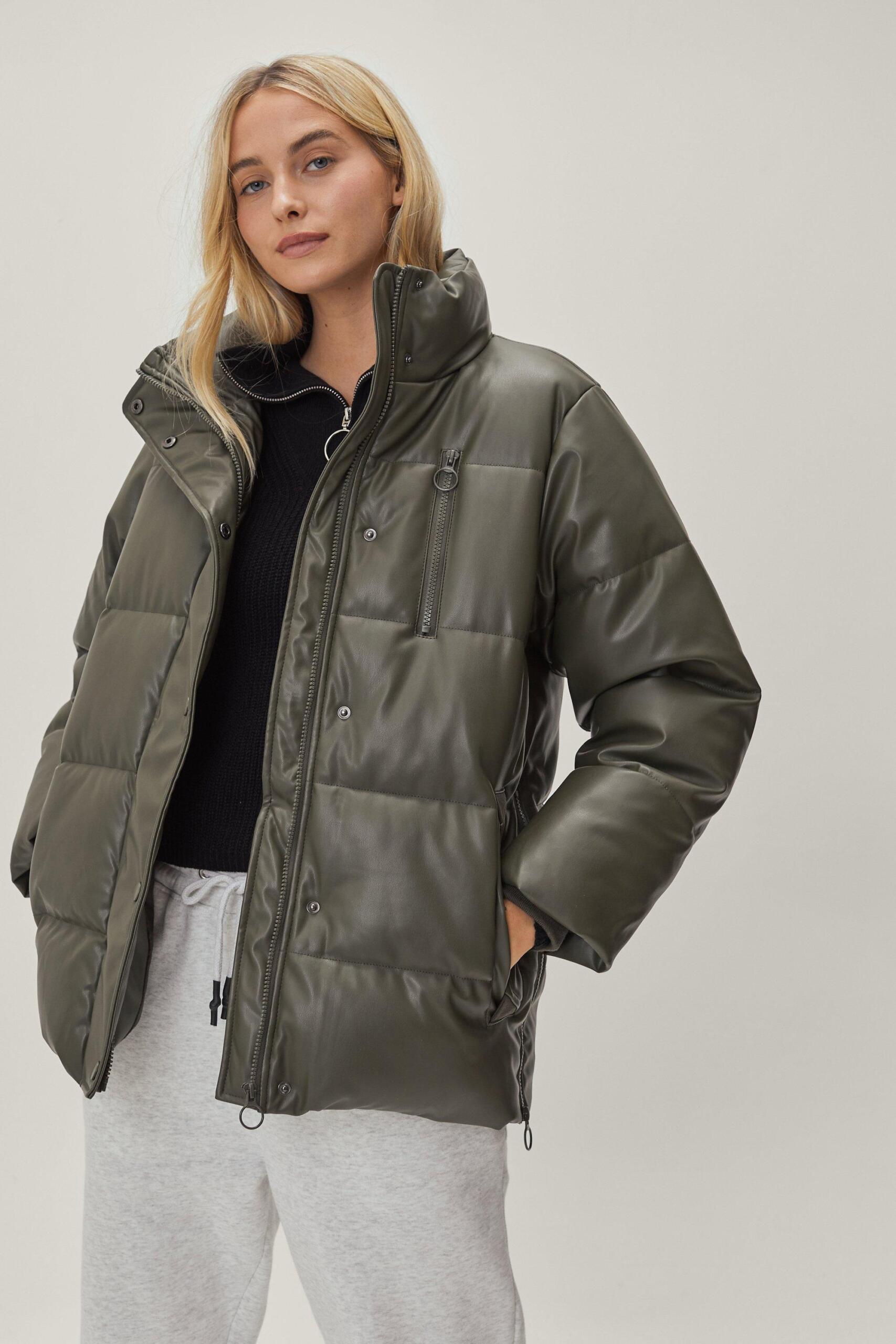 Boohoo Womens Faux Leather High Neck Padded Jacket