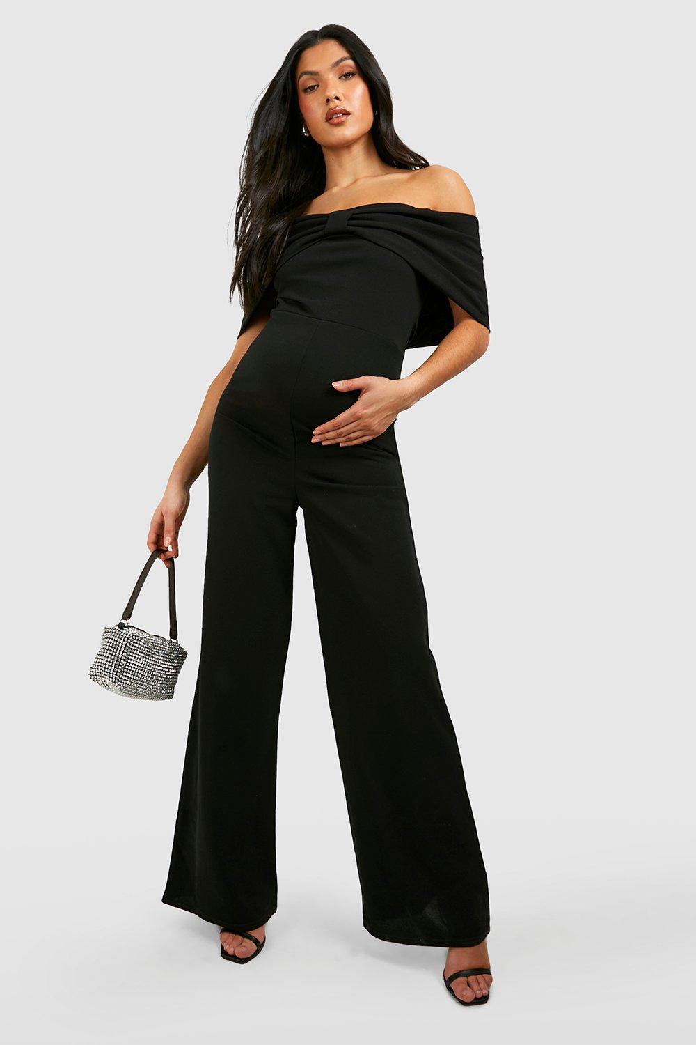Boohoo Womens Maternity Bardot Crepe Wide Leg Jumpsuit