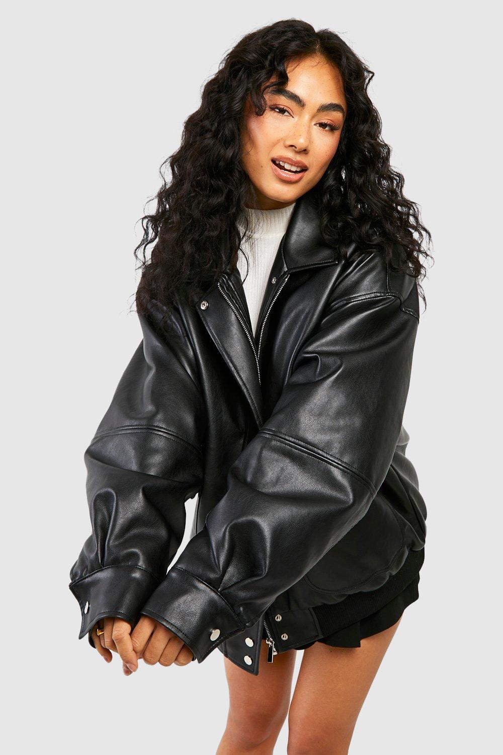 Boohoo Womens Oversized Collar Faux Leather Jacket