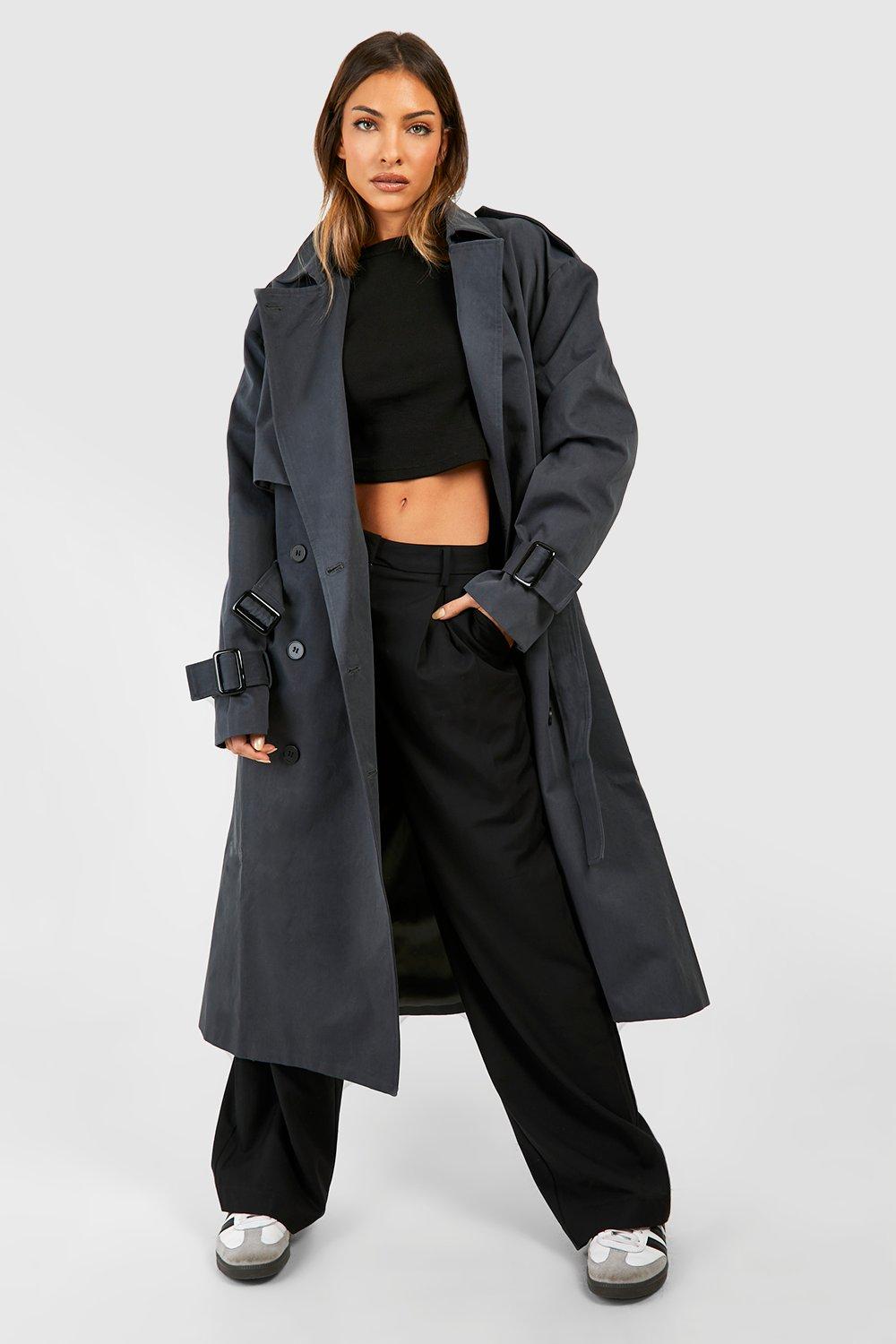 Boohoo Womens Oversized Double Breast Belt Detail Trench Coat
