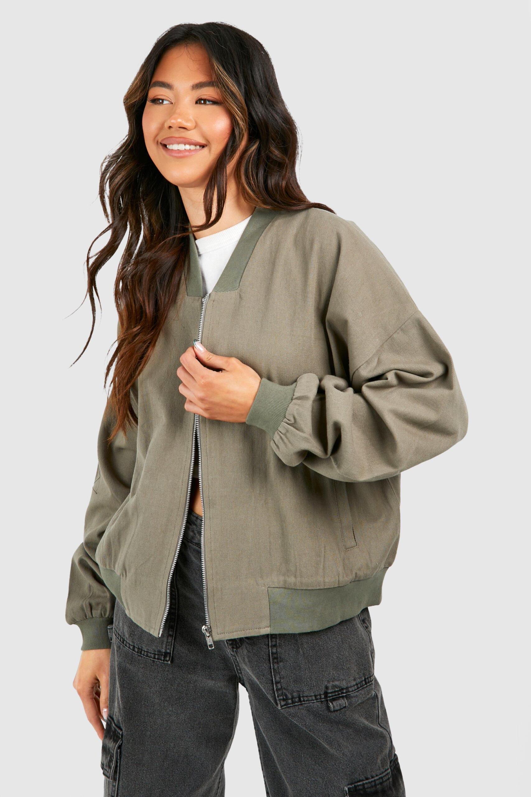 Boohoo Womens Oversized Twill Bomber Jacket