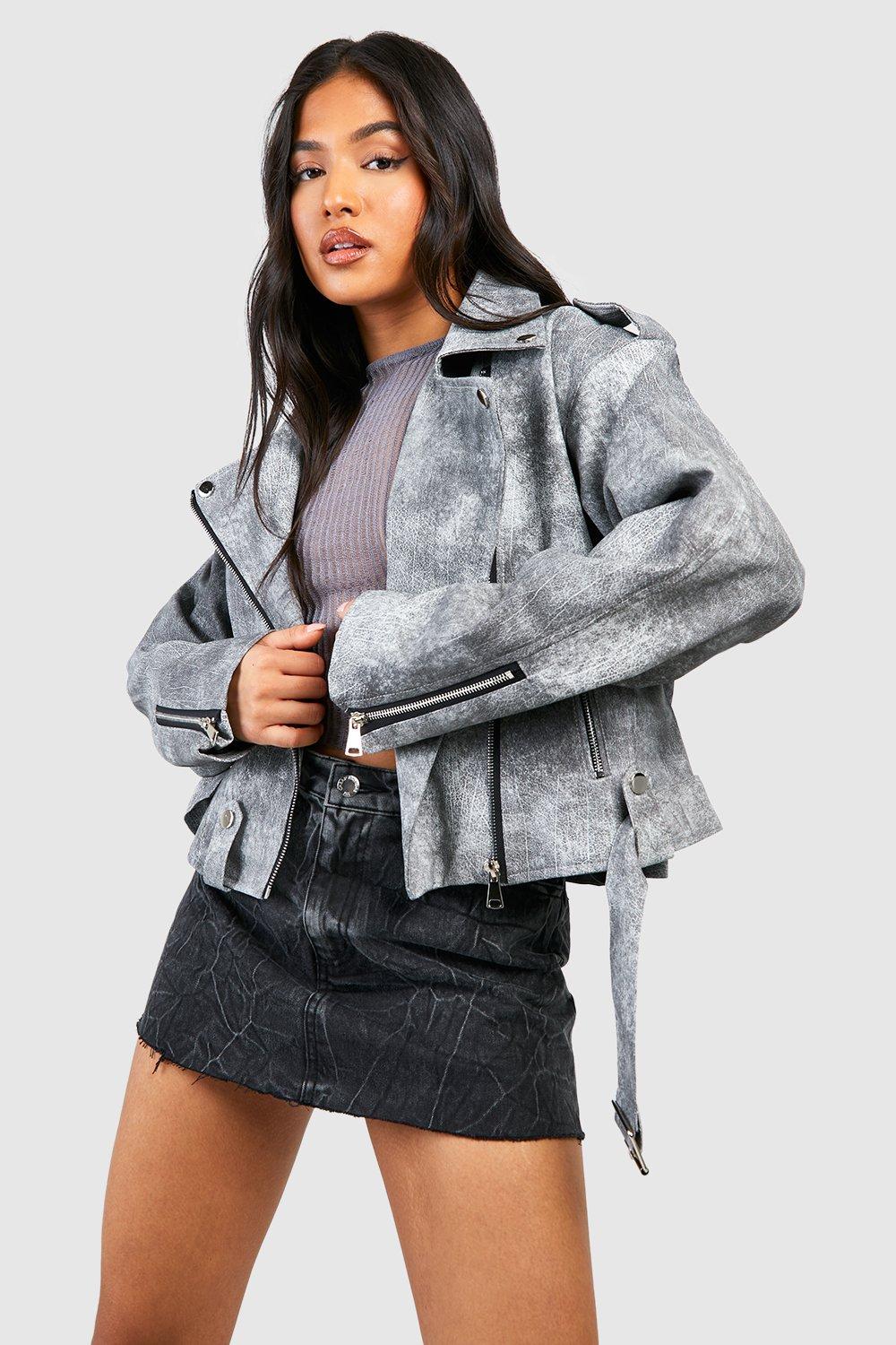 Womens Petite Vintage Look Faux Leather Biker Jacket – Grey – 6 – boohoo PETITE.Serving up the same statement styles in scaled down sizes, boohoo Petite is your port of call for perfectly proportioned pieces designed to fit women of 5’3”/1.60m and under.