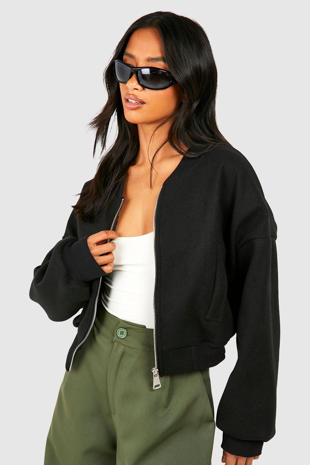Boohoo Womens Petite Wool Look Crop Bomber Jacket