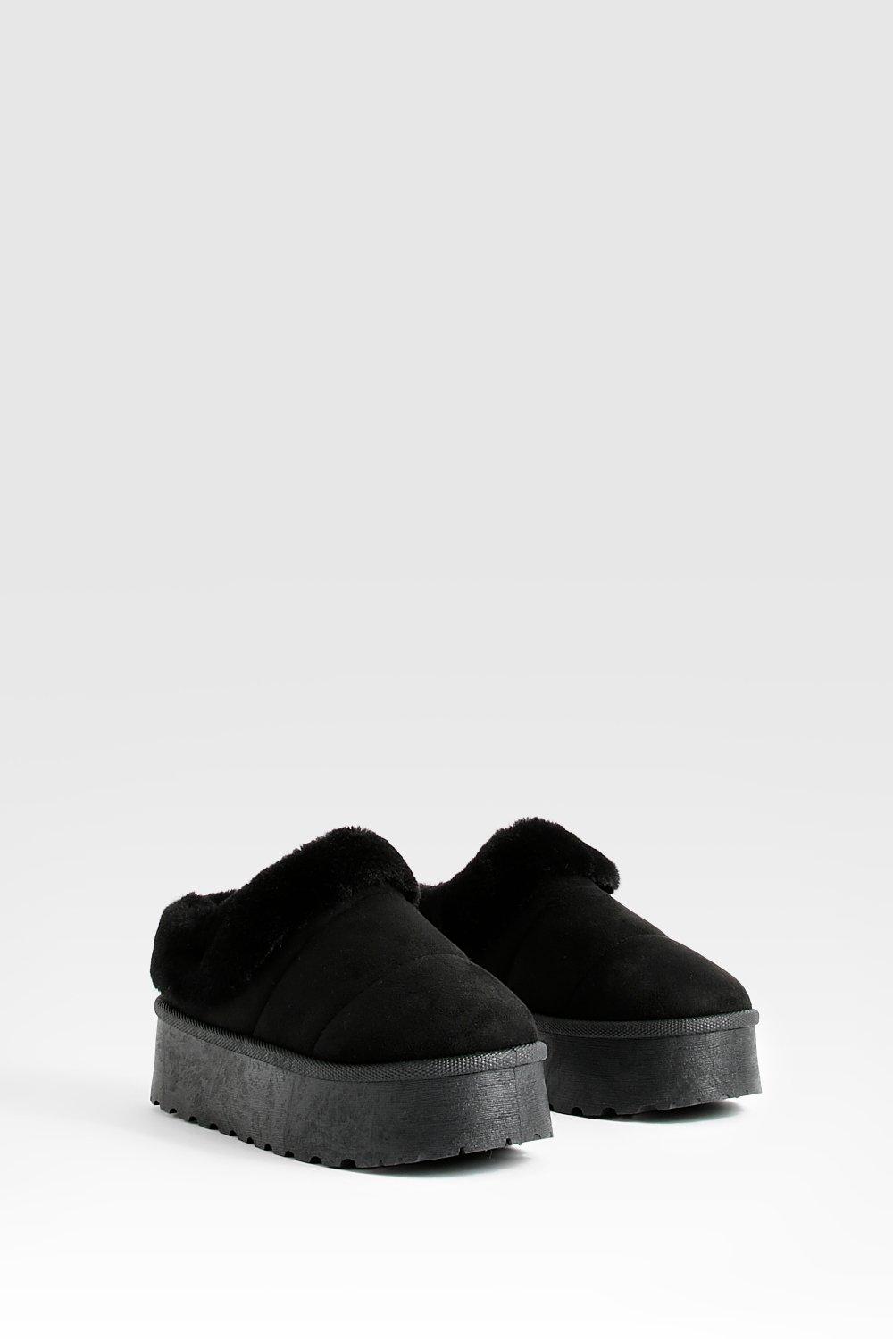Boohoo Womens Platform Fur Lined Cosy Mules