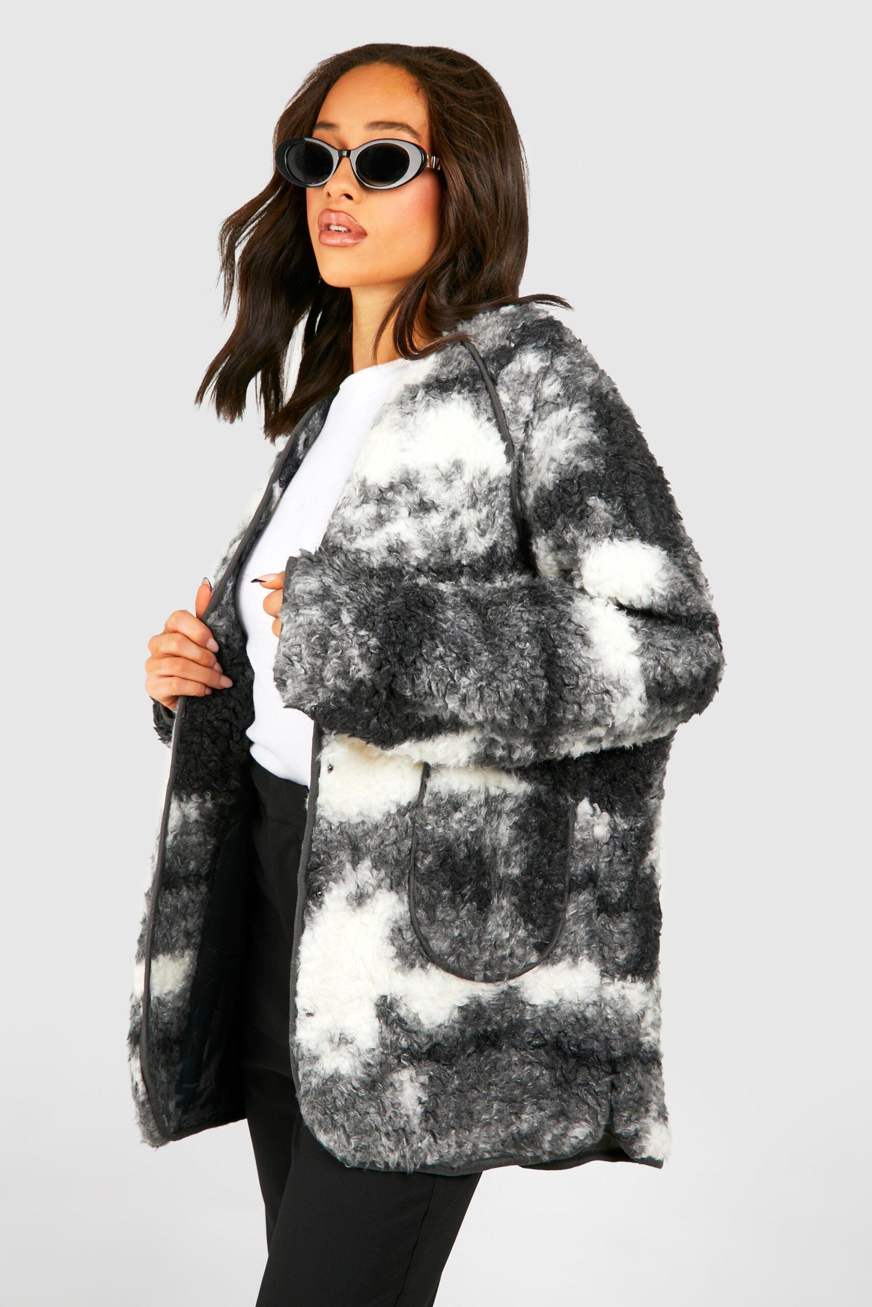 Womens Printed Teddy Jacket – Black – S – Snuggle up this season in the ultimate teddy bear coat. Often made of synthetic faux fur, this type of coat resembles a teddy bears fluff and is a winter staple. Found that killer dress for your next night out? Just throw on a soft, oversized teddy coat to complete the look. Need something extra to reach new levels of comfort? Choose from cosy cream faux fur options or a cropped teddy bomber jacket to bring the heat. Fluffy and fuzzy looking, a teddy coat will keep you warm and comfortable whenever it’s cold outside. Perfect for fall and winter, this is the ideal plush outerwear, whatever you’ve got planned. Style: Teddy CoatLength: RegularSleeve Length: Long Sleeve