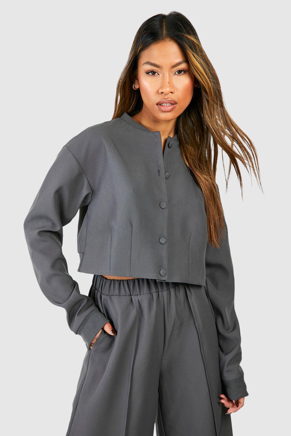 Womens Relaxed Fit Popper Bomber Jacket – Grey – 6 – Keep things casual but always on-trend with a piece of outerwear perfection, the bomber jacket. A light jacket featuring a gathered, ribbed waistband and matching cuffs, a bomber jacket is versatile, timeless, and the perfect way to edge up your casual wear. Wear your new women’s bomber jacket with a shirt and stripe joggers for the hottest look of the moment: sports luxe, or layer a varsity jacket over a t shirt dress for a fresh new-season look.Style: Bomber JacketDesign: PinstripeFabric: WovenLength: CroppedNeckline: CollaredSleeve Length: Long Sleeve