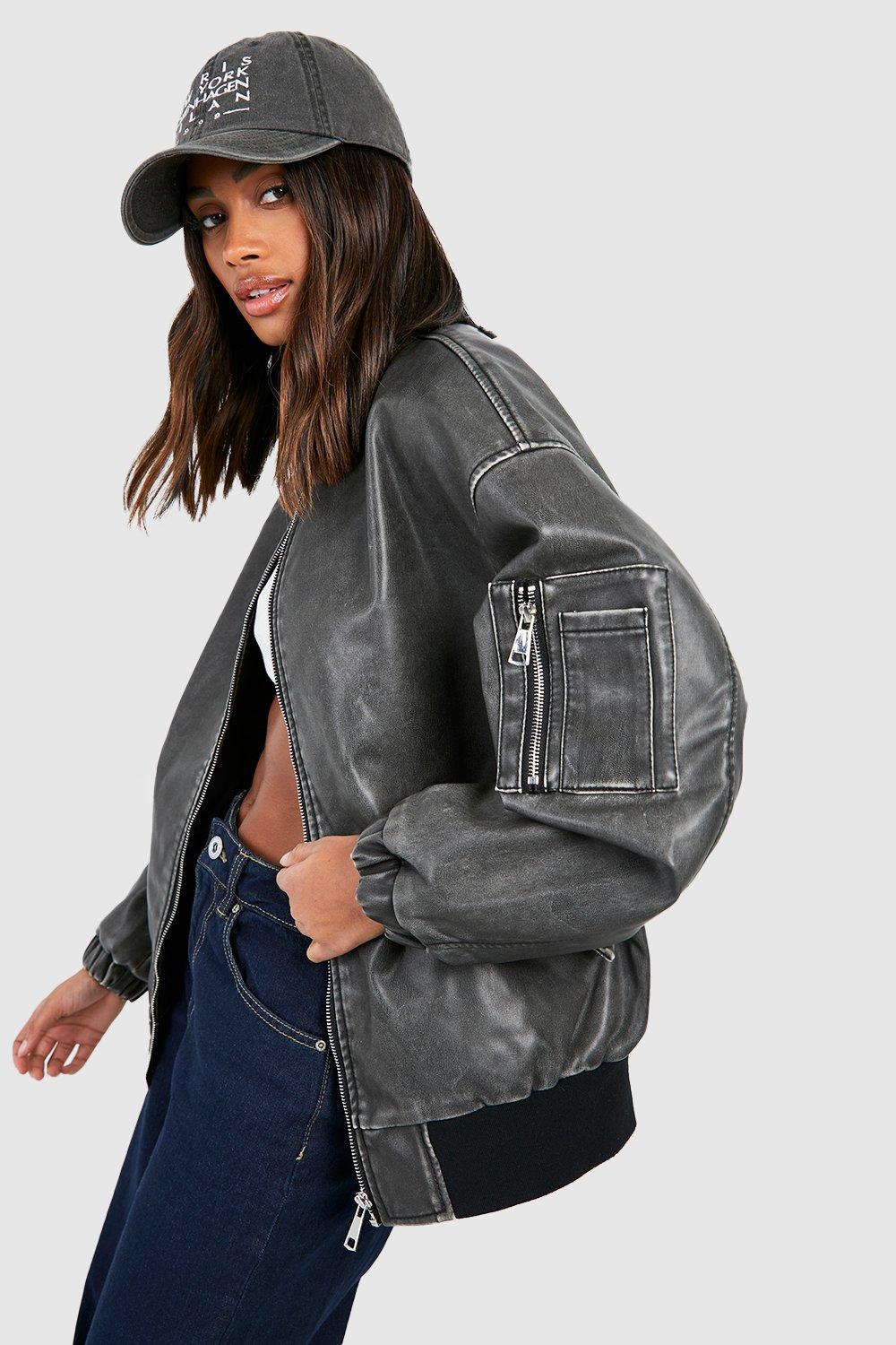 Boohoo Womens Vintage Look Faux Leather Oversized Bomber