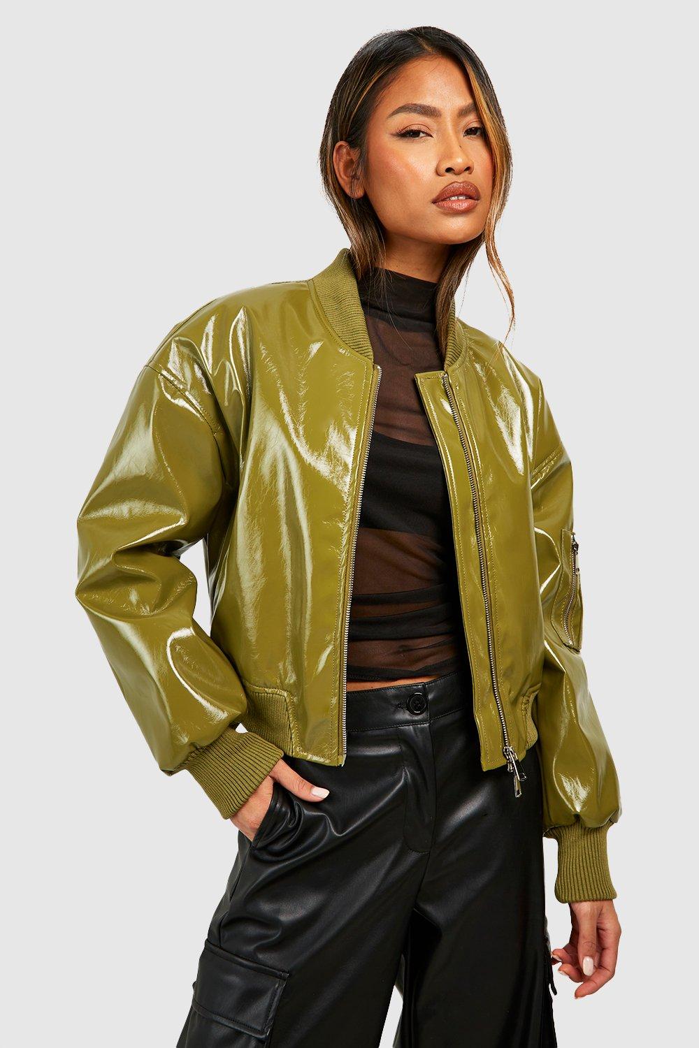 Boohoo Womens Vinyl Crop Faux Leather Bomber Jacket