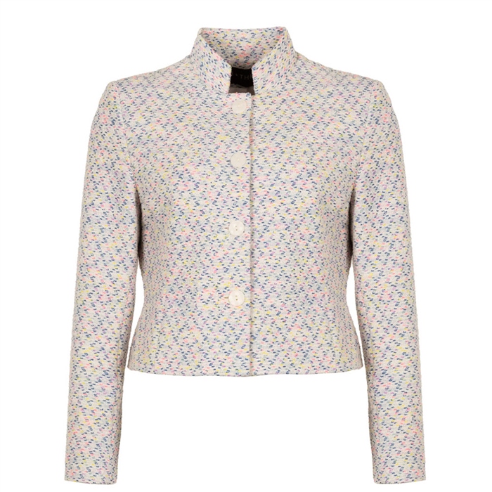 Jacket ‘Scotti’ tweed by B-Three This ‘Scotti’ tweed jacket by B-Three is a stylish and versatile piece that adds a chic touch to any outfit. This short-fitting jacket features a stand-up collar, giving a modern twist to the classic silhouet ….