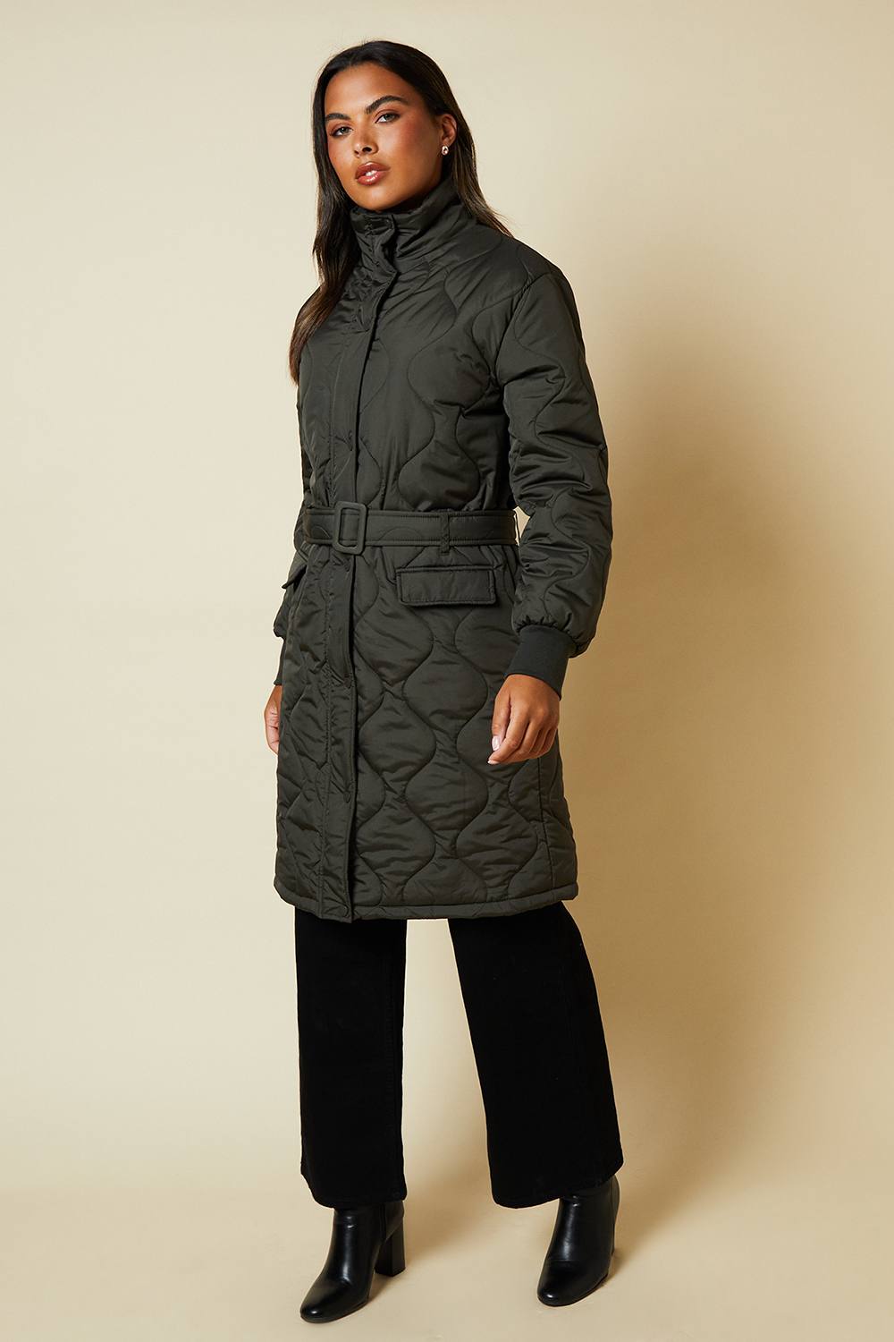 Dorothy Perkins Womens Tall Self Covered Button Quilted Padded Puffer Midi Coat