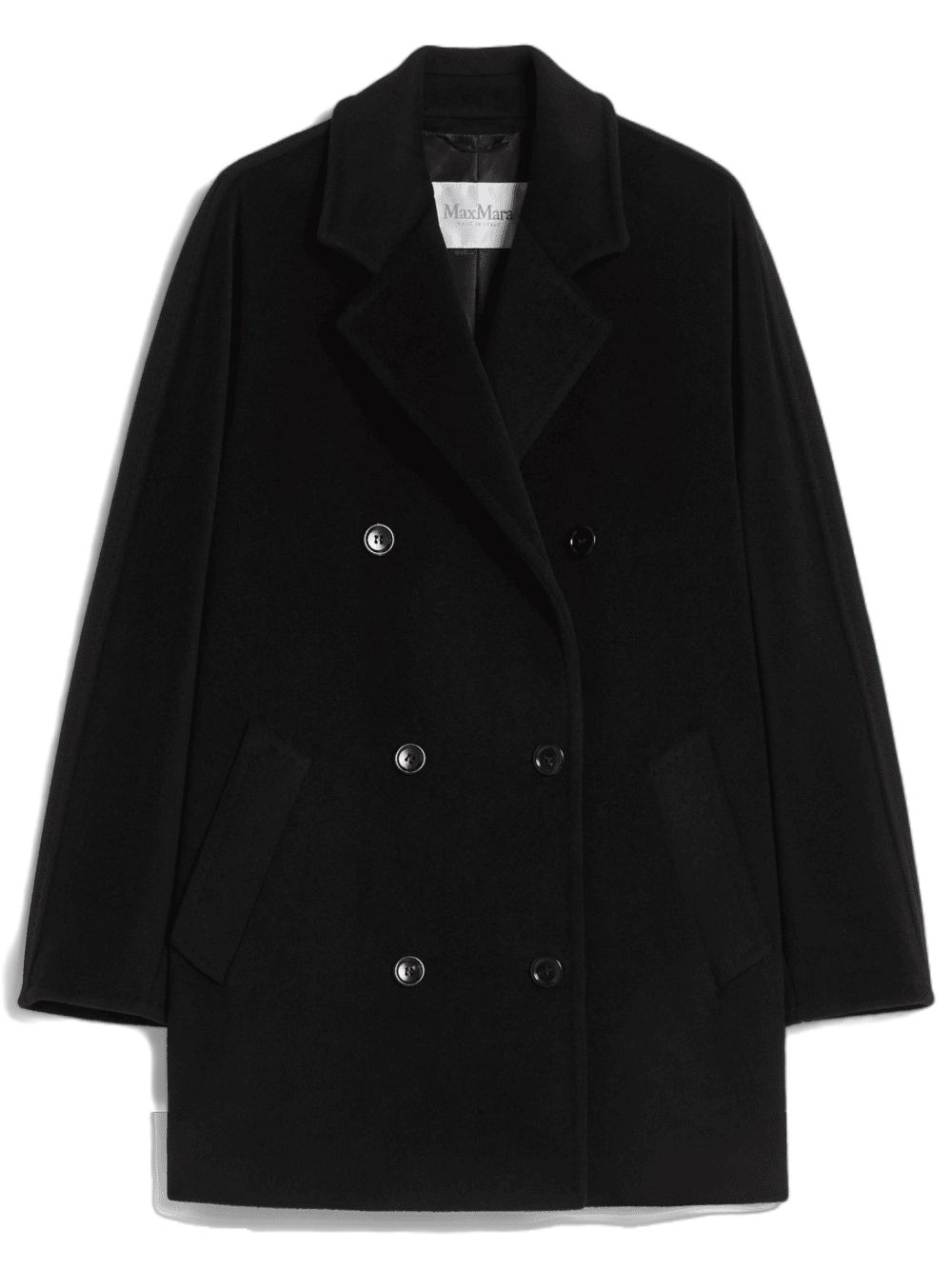 MAXMARA Rebus Short Icon Coat Black The MaxMara Rebus Short Icon Coat in black is a timeless and sophisticated piece, crafted from a luxurious wool and cashmere blend. With its clean lines, tailored silhouette, and minimalist design, this versatile coat adds an effortless touch of elegance to any ensemble, making it a perfect staple for cooler seasons. Highlights Wool and Cashmere beaver Short version above the knee Oversize fit Lapel collar Fold-up kimono sleeves Welt pockets Sartorial pick stitch finish Composition Fabric 90% virgin wool, 10% cashmere; lining 100% viscose Designer ID: 1086011600-003 Season : FW24 Collection SHOP MORE : Maxmara Sale Maxmara Coat Maxmara Dress