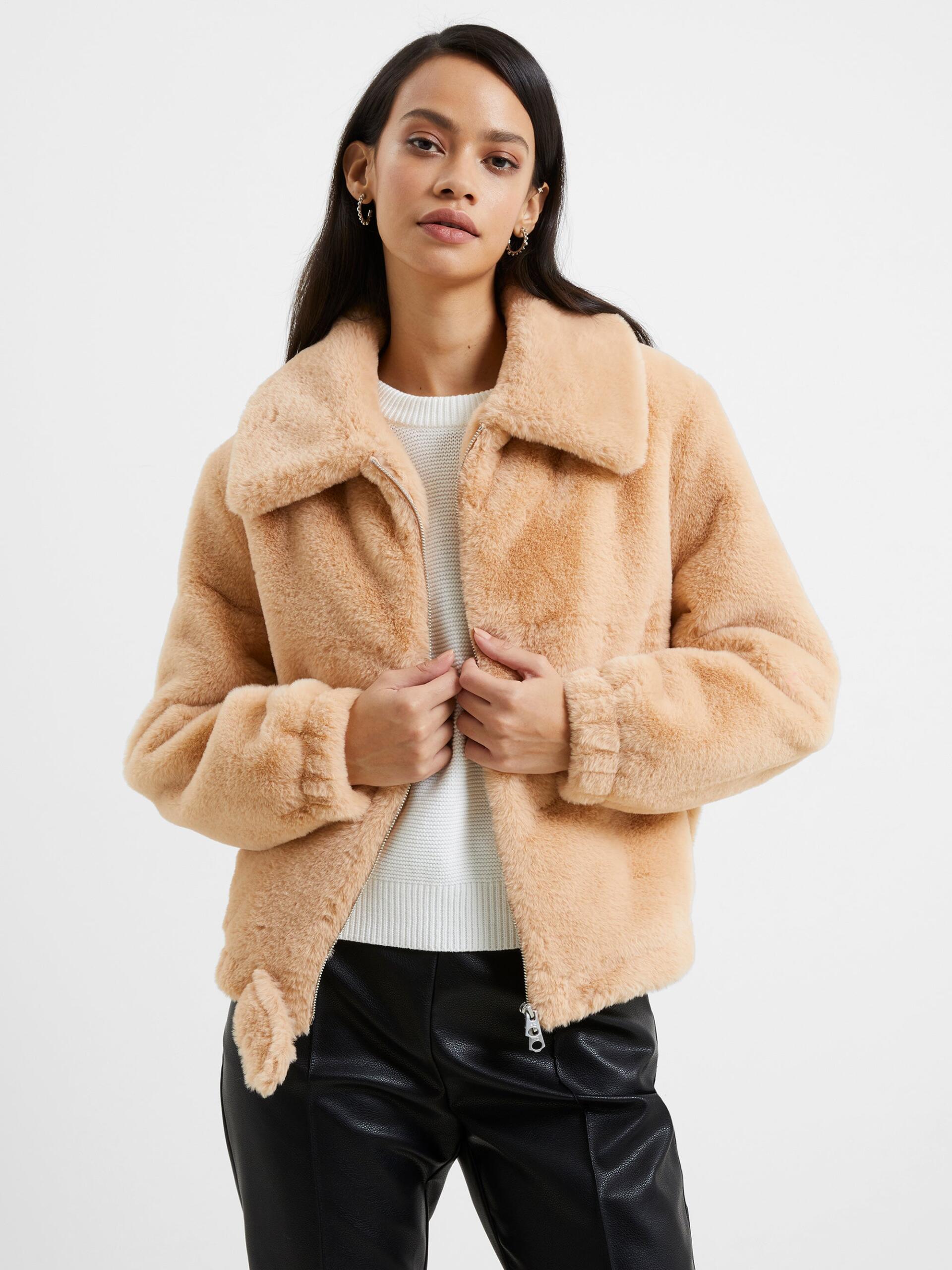 French Connection Avi Iren Faux Fur Jacket Toasted Almond