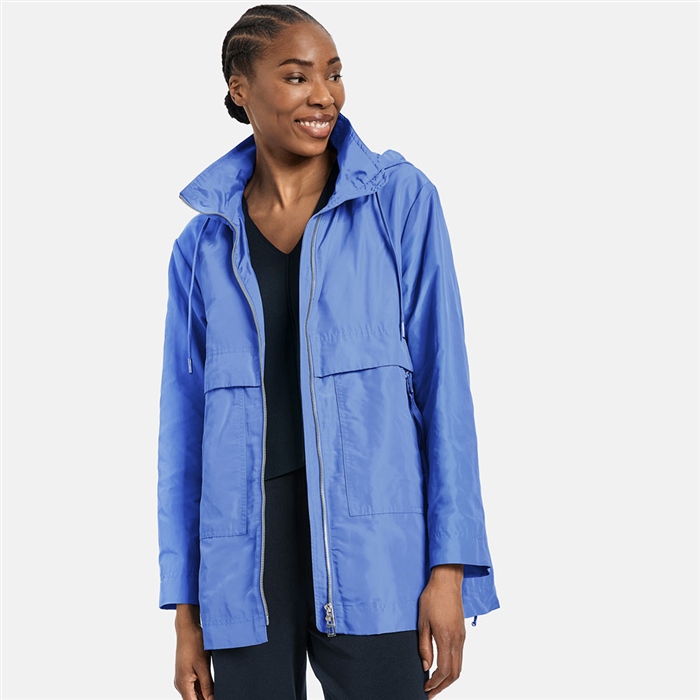 Coat with hood by Gerry Weber This coat with hood by Gerry Weber is stylish and versatile. It features a high closing collar and a detachable hood with a zip fastening and long sleeves. It is water repellent and has two large front zip up po ….