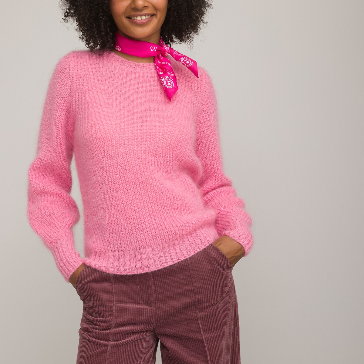 This downy soft pointelle knit jumper’s a joy to slip on, in mohair mix. It brings a feminine touch to any look.Product details • Long sleeves • Crew neck • Chunky knitProduct measurements for a size 10/M • Length: 58cm • Sleeve length: 65cm • Chest: 102cmFabric content and care advice • 50% mohair, 32% polyamide, 18% merino wool • Hand wash • Iron at low temperature • Do not bleach • Do not tumble dry • Do not dry clean • Made in Europe.