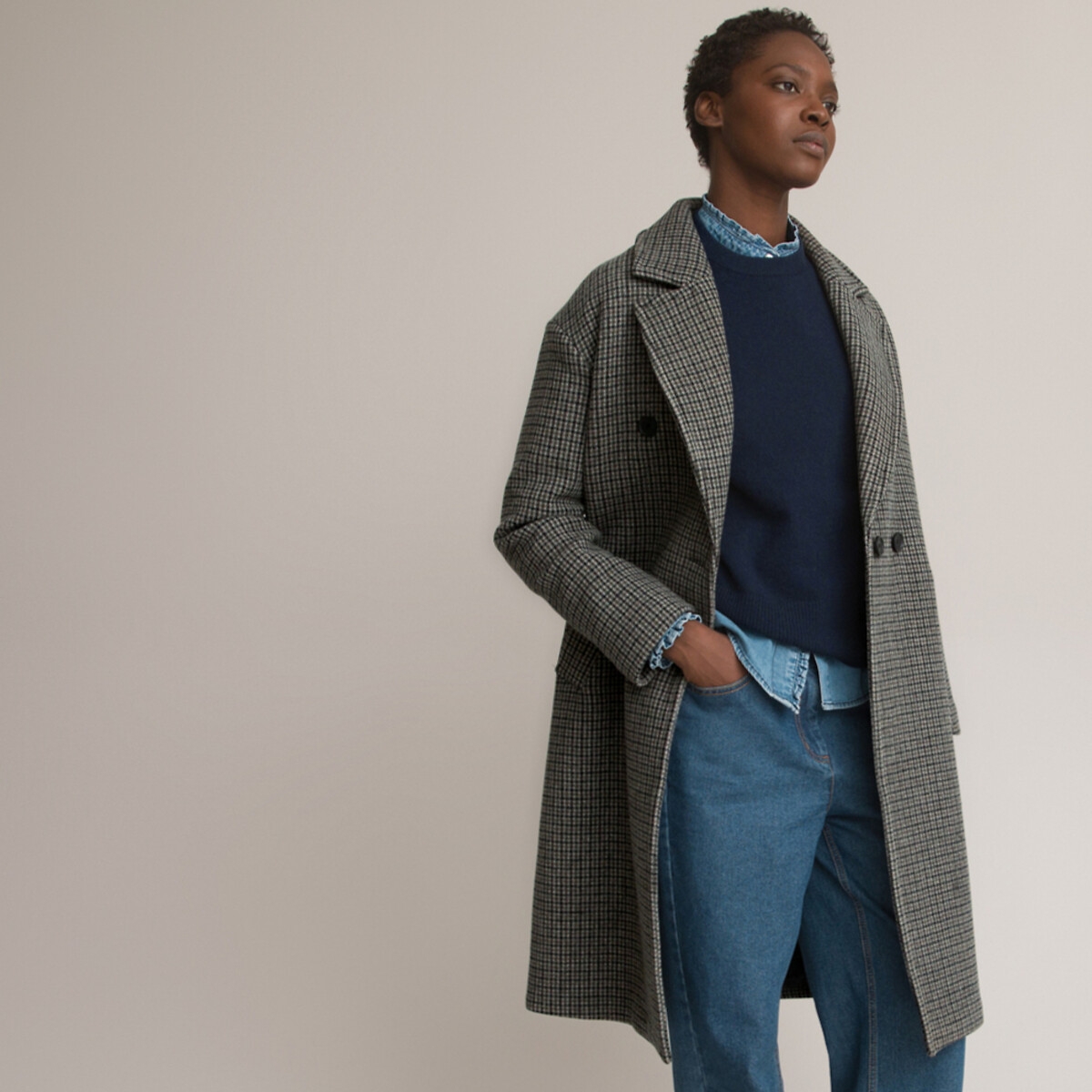 La Redoute Collections Les Signatures - Checked Long Coat in Recycled Wool Mix