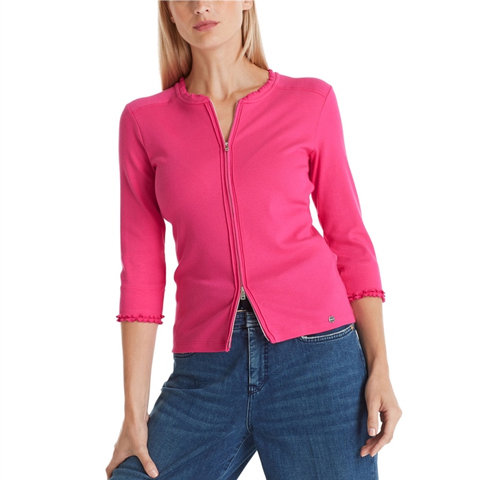 Jacket with zip by Marc Cain This jacket with zip by Marc Cain is a stylish and versatile addition to your wardrobe. It is a short fitting zip up lightweight jacket in a lovely soft stretch cotton fabric finished in a gorgeous shade of pink. ….