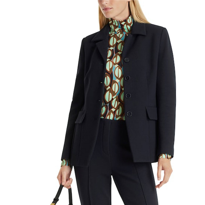 Jacket in textured fabric by Marc Cain This jacket in textured fabric by Marc Cain is a stylish and versatile addition to your wardrobe. It has a slightly fitted shaped with a collar and button fastenings with two front pockets. It has long ….