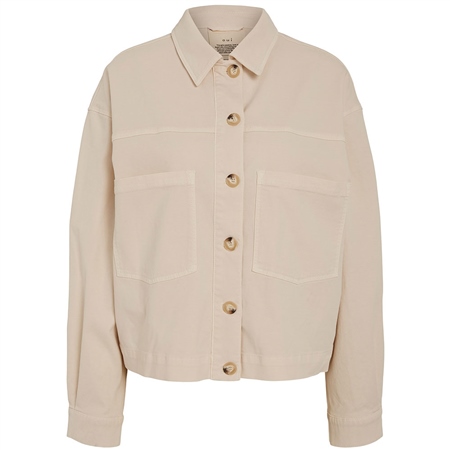 The Oui Cargo-Style Jacket features long sleeves with button cuffs, giving you the option to roll them up for a more relaxed look. Its collar adds a touch of sophistication, while the button fastenings allow for easy and convenient wear. The jacket has a relaxed and boxy fit, providing comfort without compromising on style.