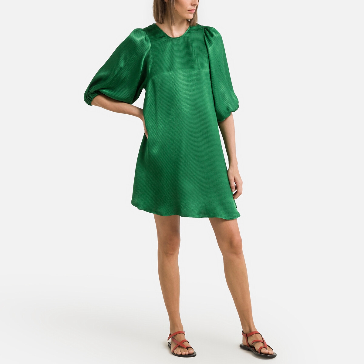 To care for this dress, refer to the product label for instructions. The Shaning satin shift dress by American Vintage is available in sizes XS to L. Perfect for those who appreciate timeless elegance and understated chic. The combination of a scoop neck, statement sleeves and darts at the bust make for a unique and flattering dress that flatters any body type.